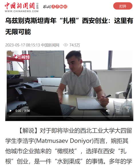 2023年5月中国-中亚峰会召开之际,来自中亚国家的留学生受到了新华社、中新社、凤凰卫视、国际在线、陕西日报、西安日报、西安广播电视台等媒体采访。他们在学校刻苦求学,在西安生活浸润,在中国奋斗成长,不断取得收获。从了解中国到读懂中国,再到成为“中国故事”的一部分。他们用心用情讲述他们的“中国故事”,喜迎中国-中亚峰会的召开。