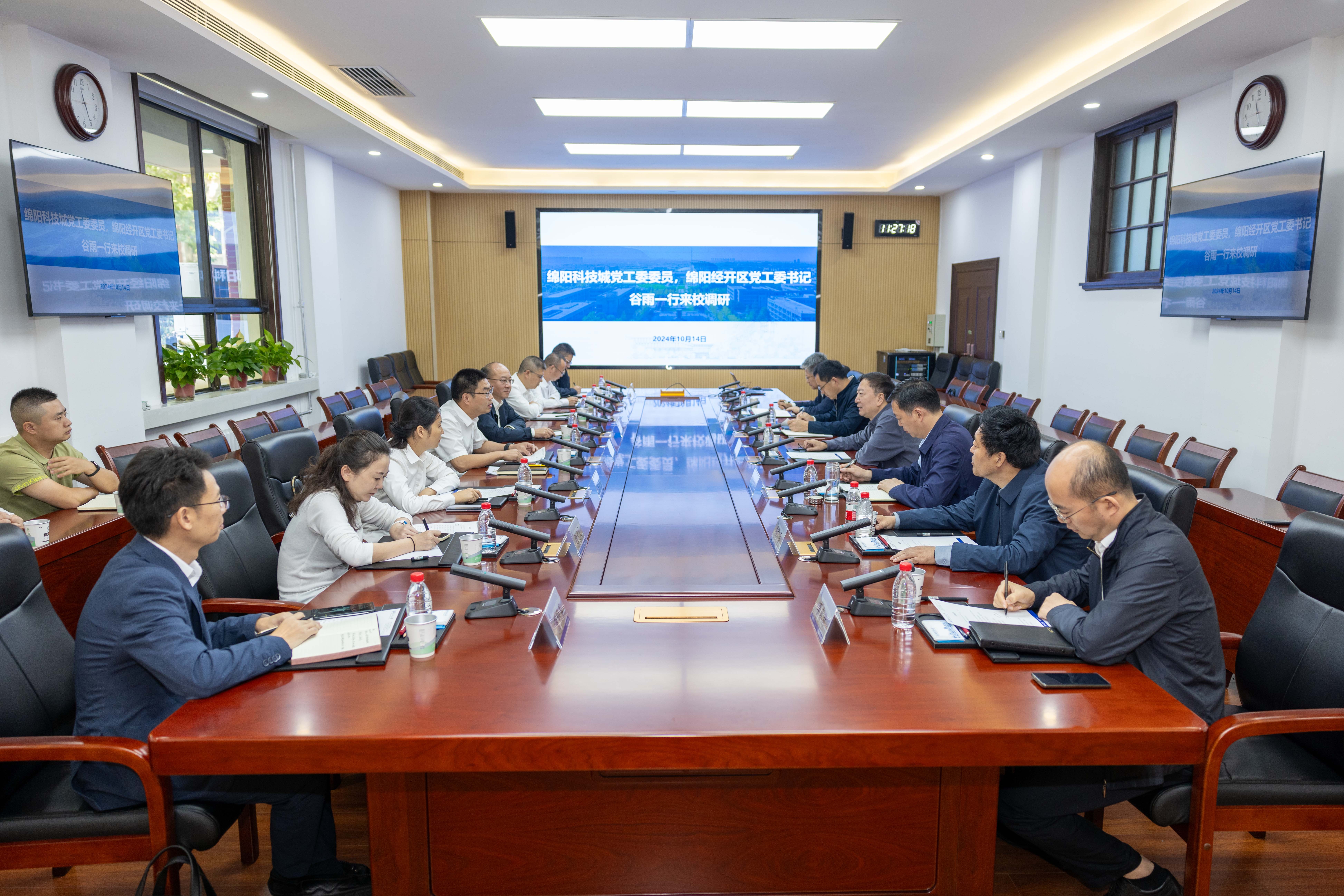 10月14日上午,绵阳科技城党工委委员、绵阳经开区党工委书记谷雨,区党工委副书记、管委会副主任谢文伟一行来校调研。必赢官网党委书记李言荣会见谷雨一行。副校长张开富参加会见。
