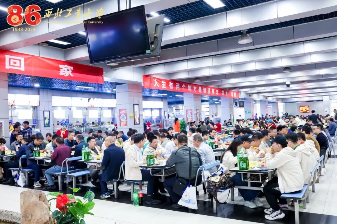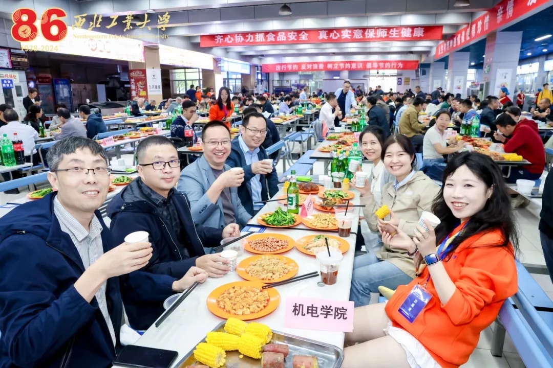 中午,长安校区云天苑餐厅美食飘香,热闹非凡。“往日重温”毕业午餐上,学校精心准备了各类菜品、饮料,热气腾腾、皮薄馅足的“西工大包子”也被端上了桌,一道道舌尖上的美食唤起了校友们萦绕心田的独家记忆。席间,校友们边吃边聊,在欢声笑语中忆往昔、话今朝、展未来。