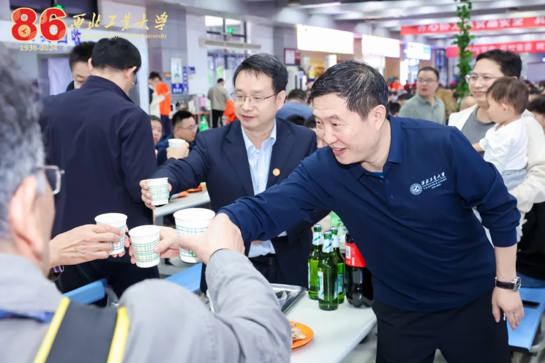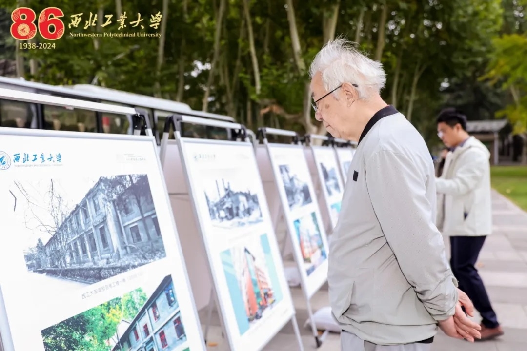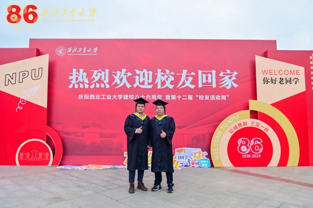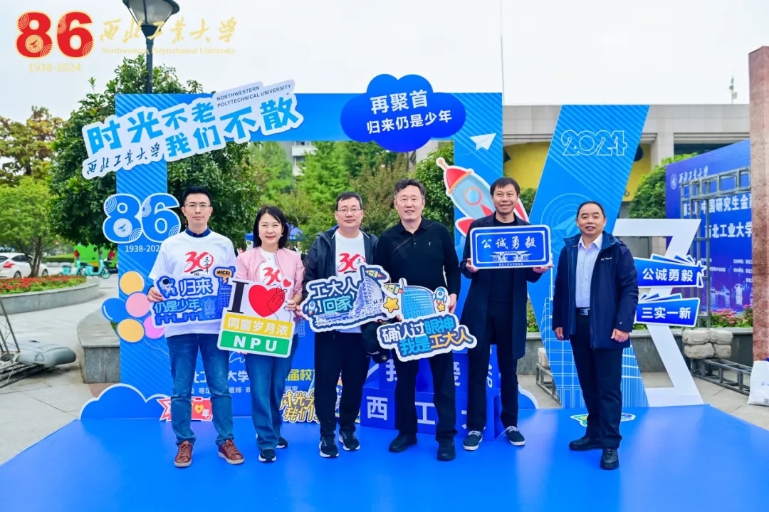 翱翔学生中心广场作为本次校友返校系列活动的集结营,同时开设校园徒步活动奖品兑换、校友资料征集、基金会公益项目展示、西工大文创展销、出版社图书及文化创意周边展示、工大校园变迁摄影展、校园储蓄卡办理、学位服打卡拍照等活动,校友们呼朋引伴、合影留念,“我爱西工大!”“祝福母校!”的欢呼声此起彼伏,经久不断。