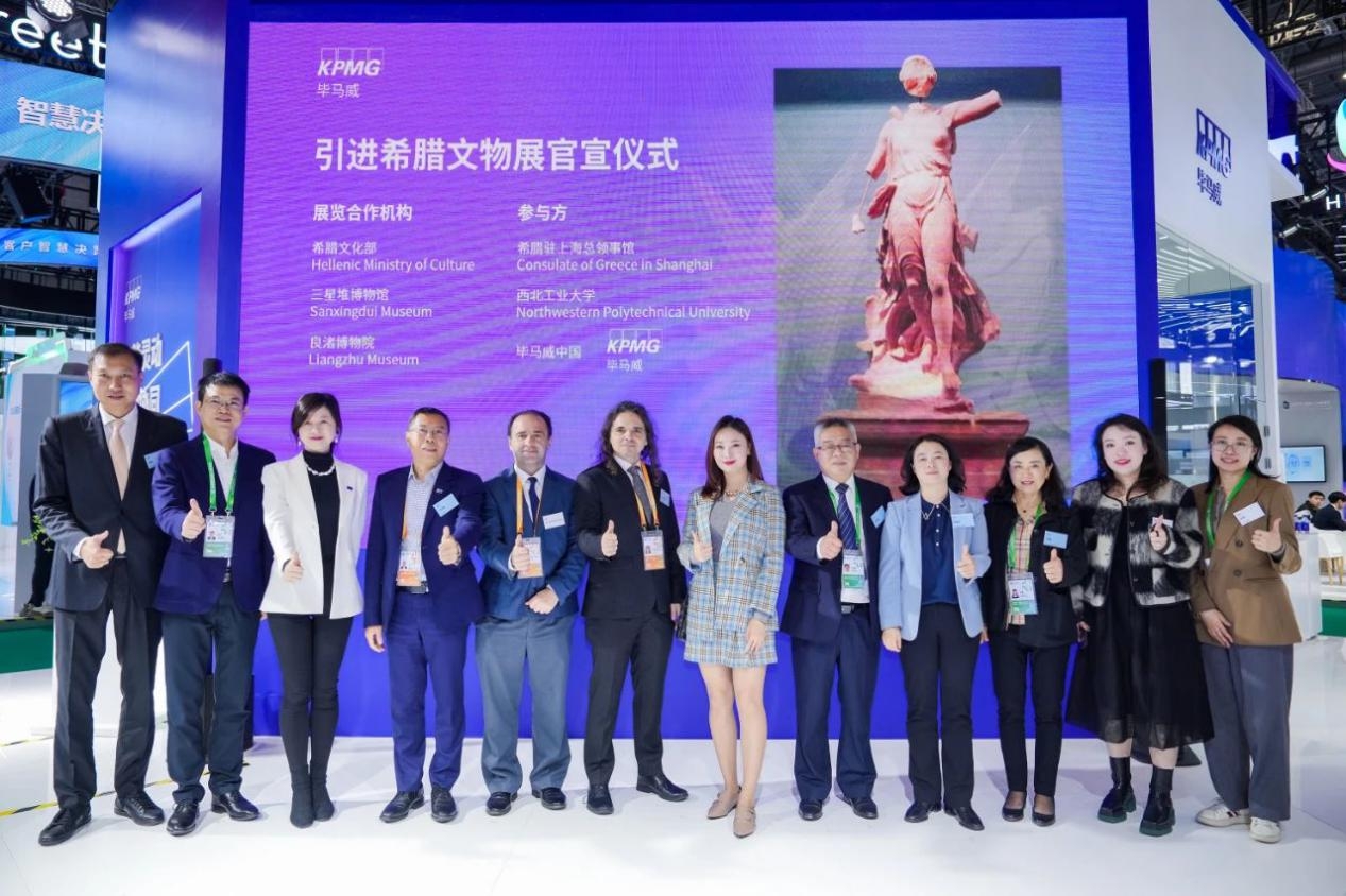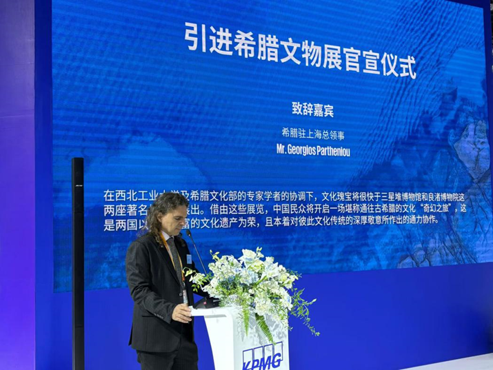 11月8日上午,“2024年进博会希腊文物展官宣仪式”在上海进博会现场举行,三星堆博物馆、良渚博物院联合希腊文化部正式宣布将引进“古希腊的旅程”(暂定名)精品文物展,该展览将于2025年4月到2026年3月之间分别在三星堆博物馆、良渚博物院各展出半年,展品主要包括精美绝伦的青铜器、金器、雕塑等文化瑰宝共计160余件(套)。希腊驻上海总领事馆总领事Georgios Partheniou 先生、外交领事Dimitrios Foukis先生亲临现场见证官宣,三星堆博物馆景区管委会主任范晓华、良渚博物院执行院长马东峰等嘉宾出席并致辞。必赢3003no1线路作为本次展览的学术策划受邀出席活动,艺术教育中心首席专家刘惠教授,文化遗产研究院院长程圩以及太仓研究院相关专家学者受邀参会。
