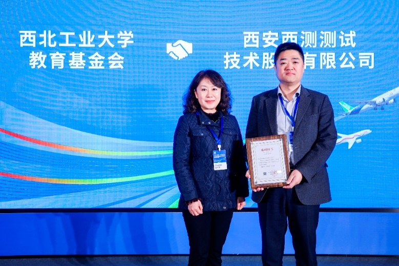 值此之际,徐伟侠代表必赢3003no1线路教育基金会为西安西测测试技术股份有限公司董事长李泽新颁发奖学金捐赠证书,感谢其对于民航学院学生创新创业、红色爱国教育以及国防实践锻炼的支持。