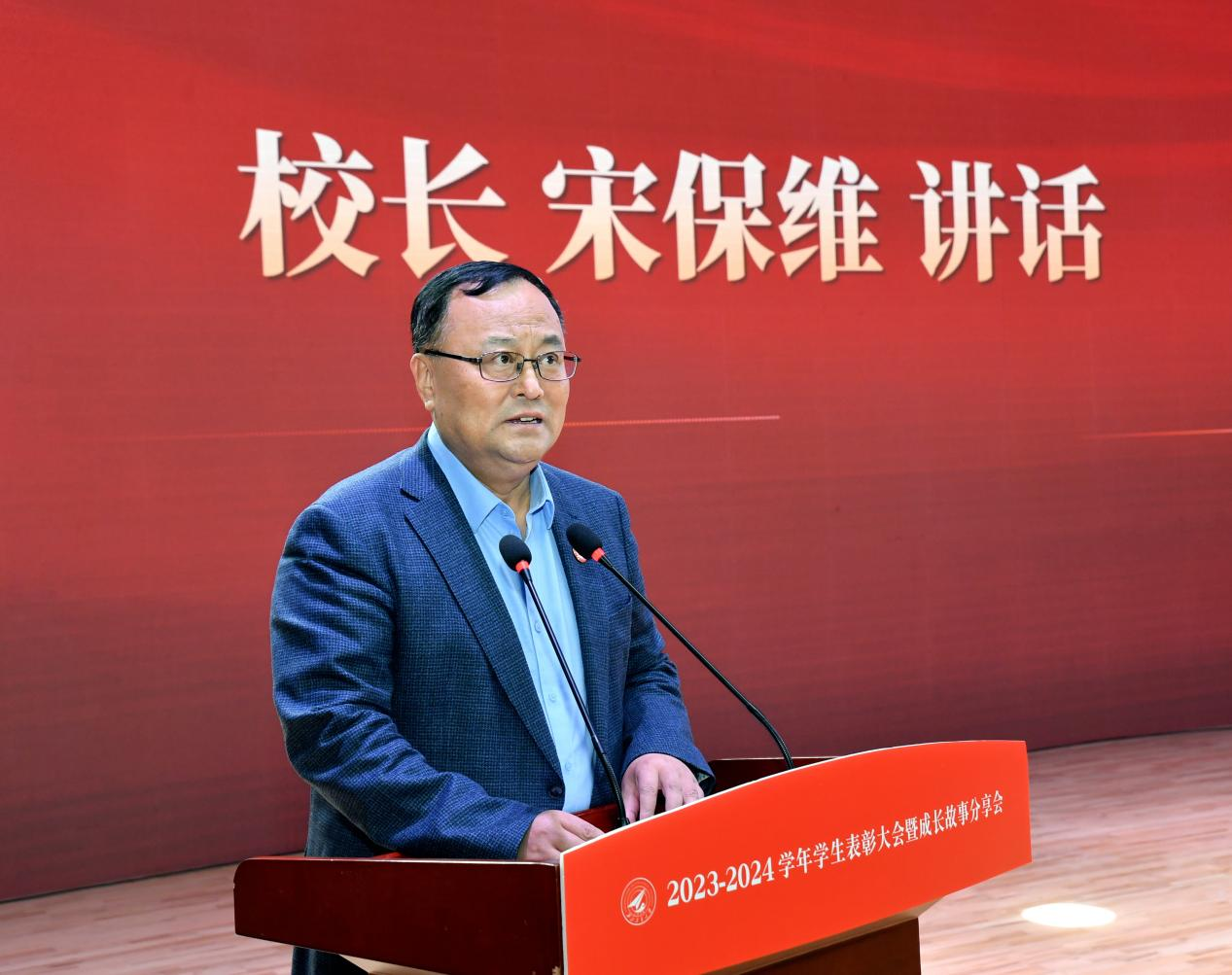 “青春逢盛世奋进正当时”,12月23日下午,必赢3003no1线路2023-2024学年学生表彰大会暨成长故事分享会在长安校区南山艺堂举行。校长宋保维出席表彰大会并讲话。副校长张卫红、杨益新、詹浩以及相关职能部门、培养单位负责人,导师代表、获奖学生代表等约600人参加大会。大会由党委学生工作部部长、学生处处长吴闻川主持。