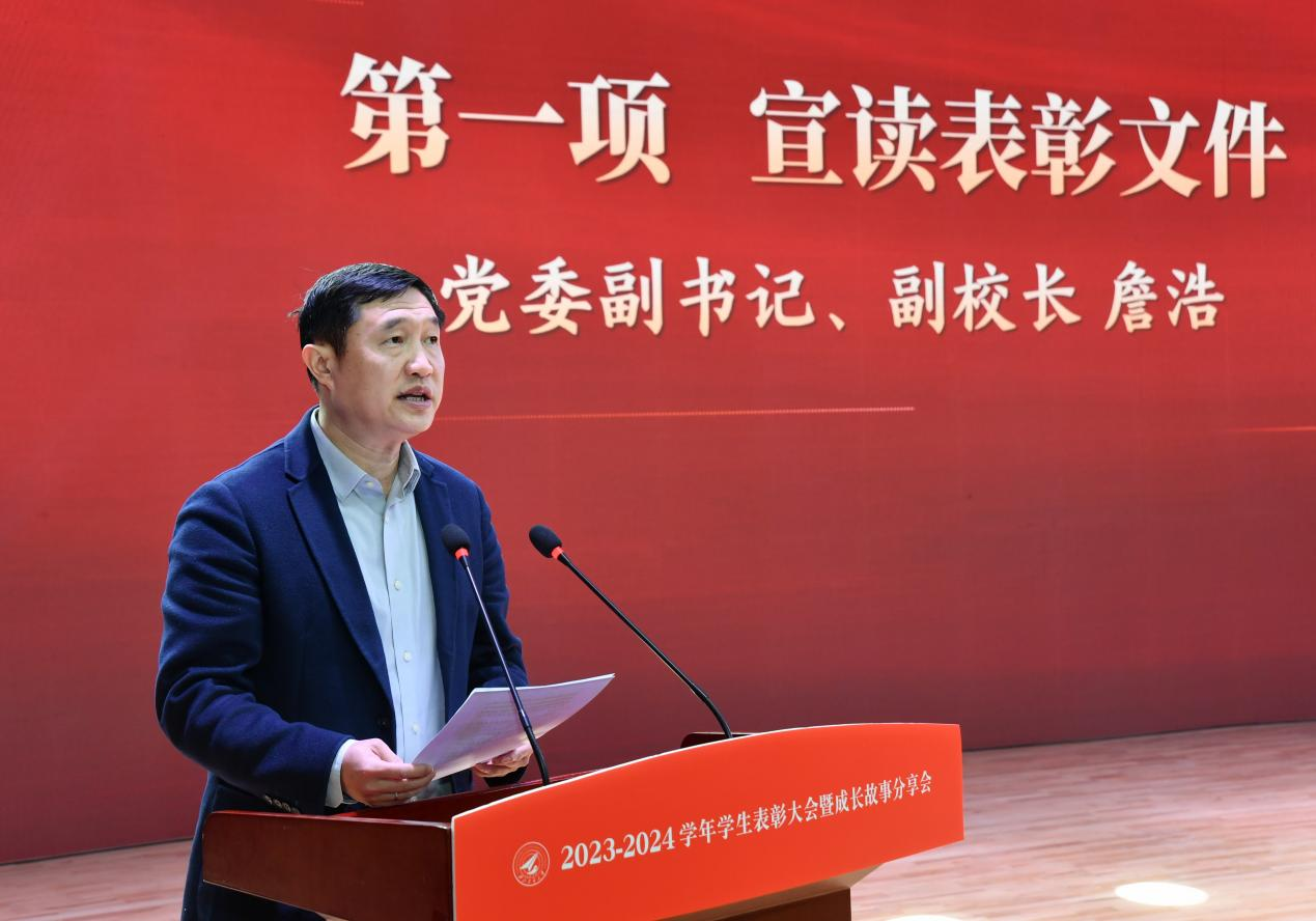 詹浩宣读了《关于表彰2023-2024学年学生先进集体、优秀学生和专项奖学金获得者的决定》。