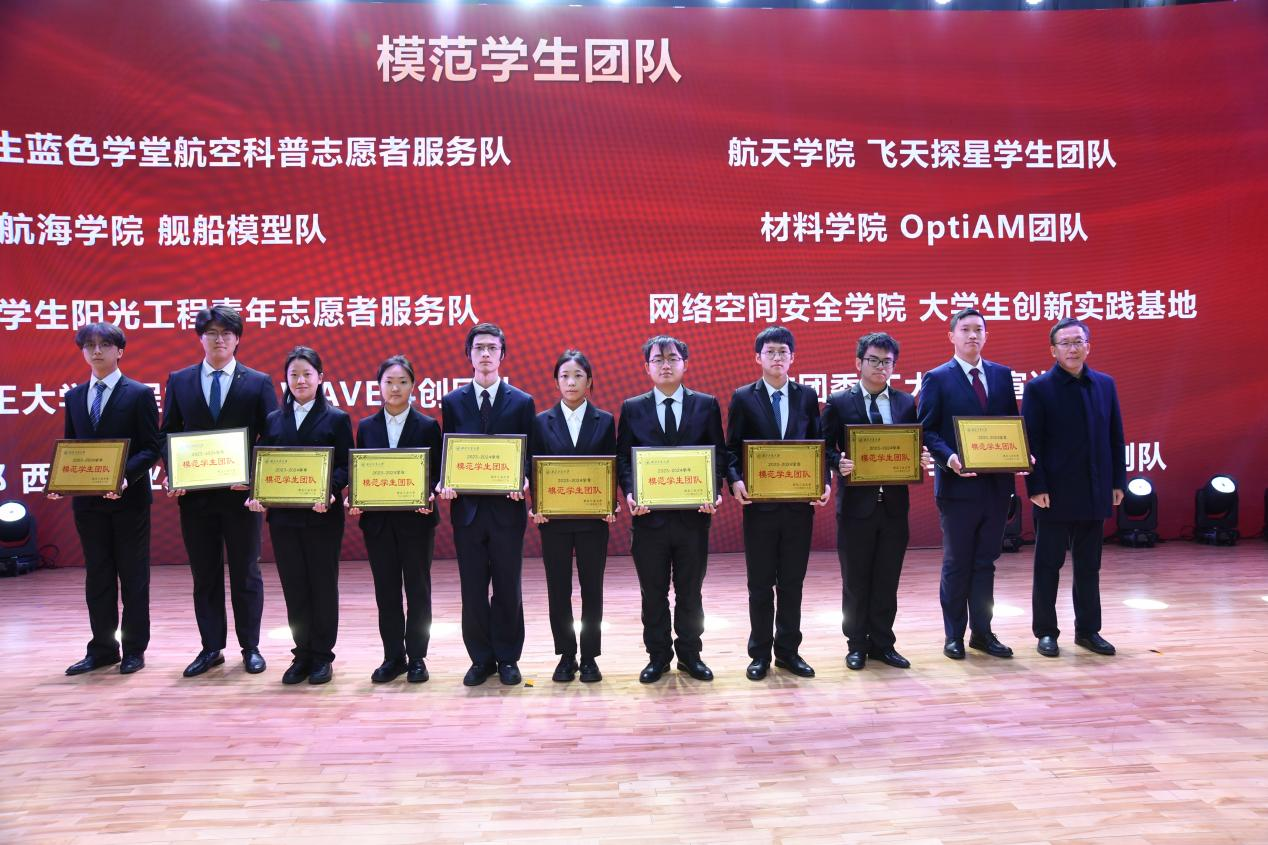 张卫红为模范学生团队、本科生模范班级、研究生模范班级、模范研究生导学团队颁奖。