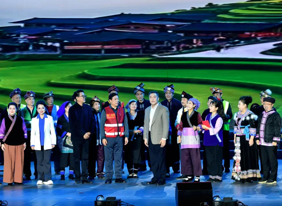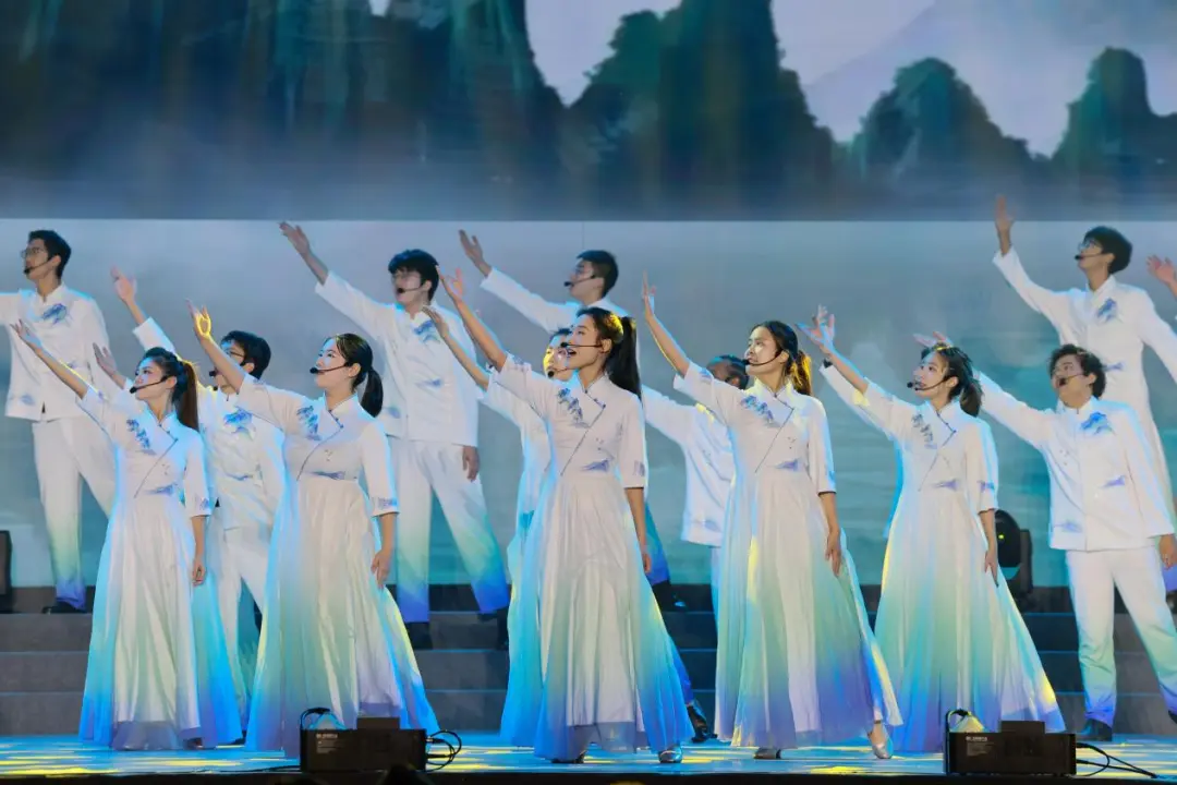 教工艺术团带来音乐剧《融水谣》,呈现了一幅苗寨山村充满民族风情的画卷,展现了苗乡脱贫、乡村振兴的秀美史诗。