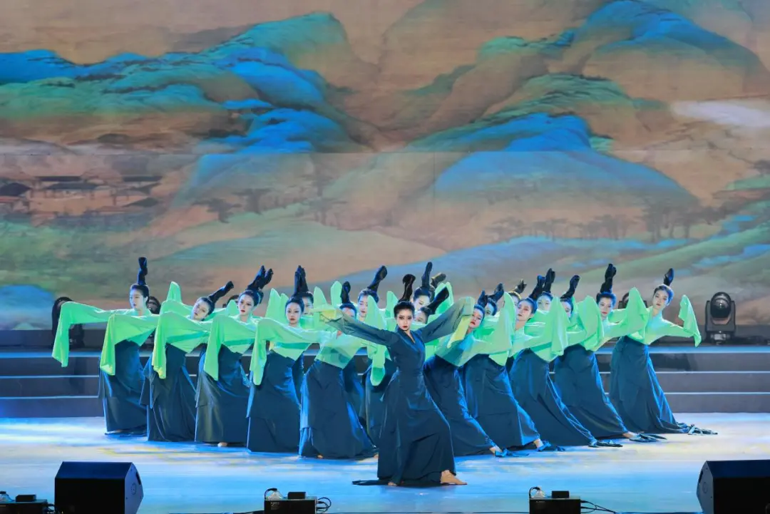《只此青绿》的千年古韵在舞台绽放,长袖飘舞,如山间云雾缭绕,诉说岁月在历史长河的流转。