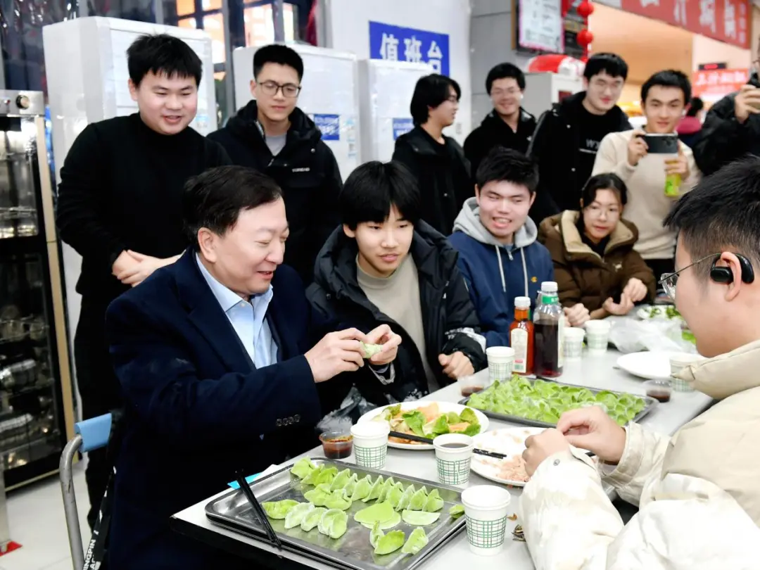 晚会开始前,各培养单位组织同学们一起包饺子、吃团圆饭,李言荣、宋保维等校领导来到现场参与活动,和同学们亲切交谈,餐厅中一片温暖祥和的新年氛围。