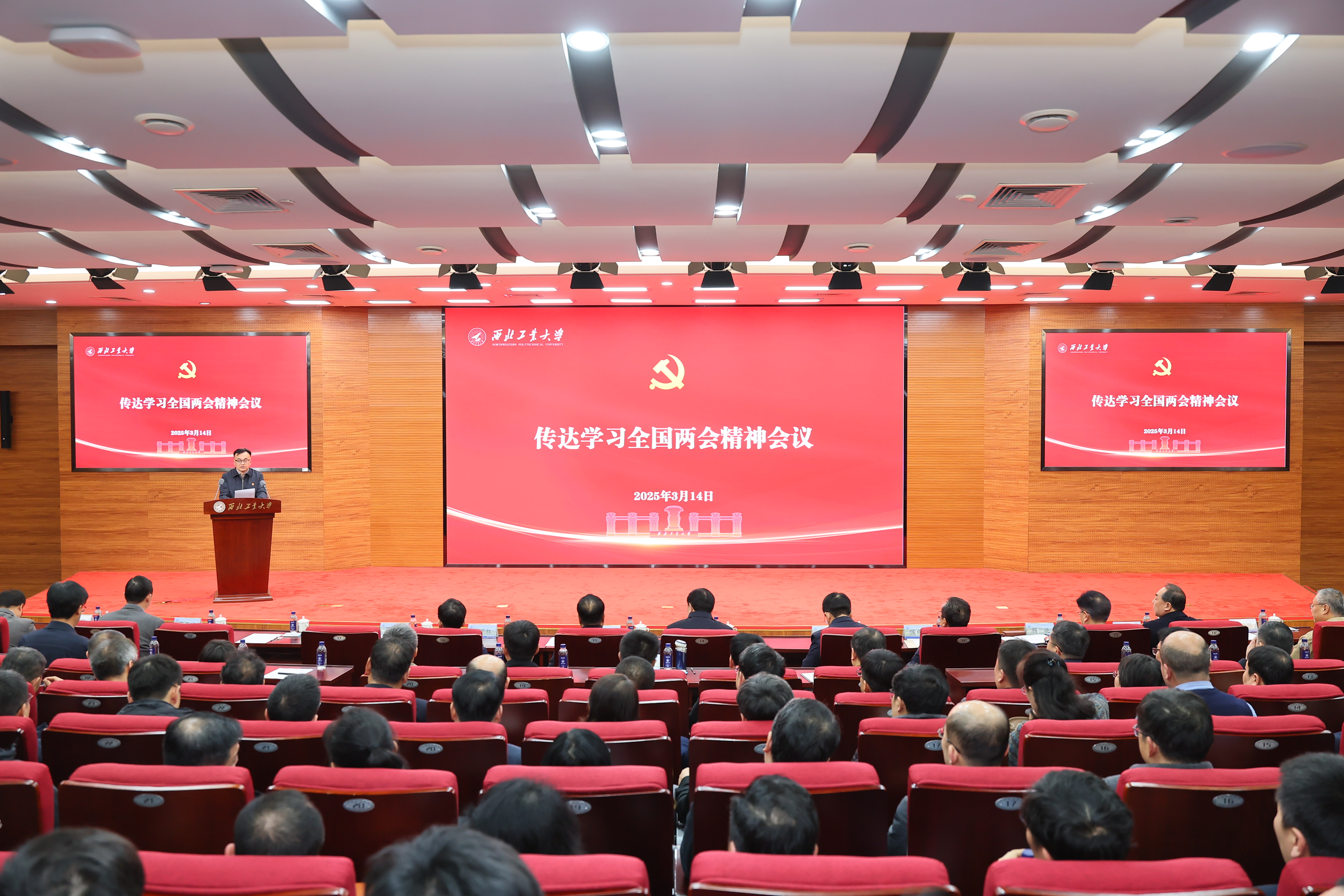 3月14日,必赢官网召开干部大会暨党委理论学习中心组(扩大)会,专题传达学习贯彻习近平总书记重要讲话精神和全国两会精神,研究贯彻落实举措。全国人大代表、校党委书记李言荣出席并讲话,全国人大代表、中国科学院院士张卫红传达全国两会精神。校长宋保维出席会议,全体校领导,近期退出领导岗位的校领导,学校党委委员、纪委委员,全体中层干部共300余人参加会议。会议由党委副书记吕卫东主持。