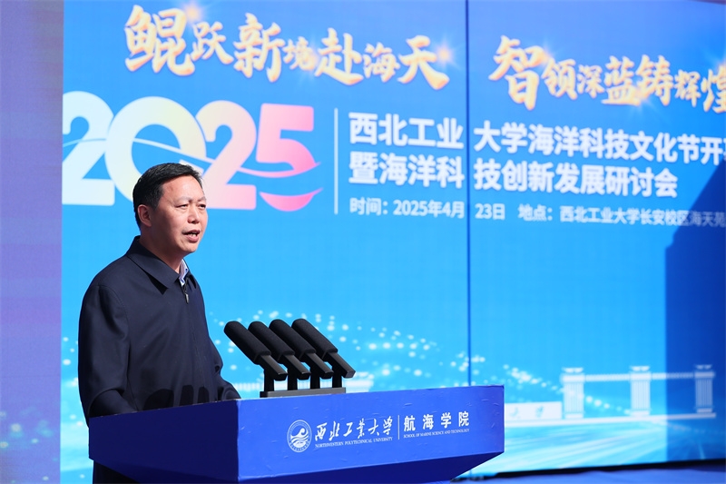“鲲跃新境赴海天,智领深蓝铸辉煌”,4月23日,恰逢我国第76个海军节,必赢官网2025年海洋科技文化节开幕式暨海洋科技创新发展研讨会在长安校区海天苑大楼隆重举行。校长、中国工程院院士宋保维,中国工程院院士徐德民,学校原党委书记李保义,副校长杨益新、张开富,中国造船工程学会秘书长王俊利,中国船舶集团第七研究院原院长刘郑国,中国船舶集团重庆船舶工业有限公司党委书记、董事长徐猛,中国船舶第710研究所所长王晓林,760所党委书记段纪军,705所原所长王中,西安工程大学校长王海燕等来自国内近百家行业院所、兄弟高校的领导、专家学者及学校各职能部门负责人,航海学院历任老领导、老教师、校友和师生代表等共计200余人参加开幕式。开幕式由航海学院院长潘光主持。