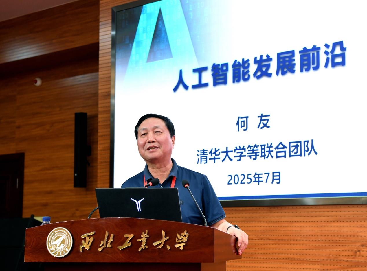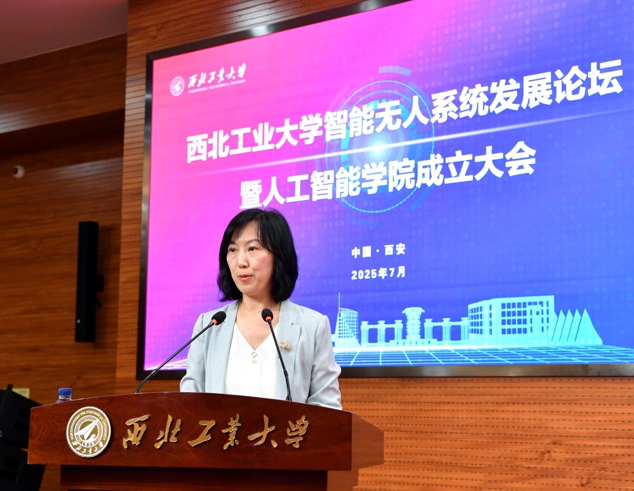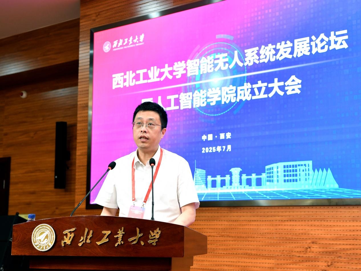宋保维向长期关心支持学校事业发展的兄弟院校、合作单位表示感谢。他表示,西工大作为高等教育第一方阵、国家战略科技力量重要组成部分,必须抢抓人工智能发展重大机遇,学校在人工智能人才培养和科学研究方面有着深厚的积淀,对人工智能学院的未来发展充满信心。人工智能学院的成立是西工大发展历史中具有里程碑意义的一件大事,关乎学校长远发展,他对高标准建好人工智能学院提出三点要求:要打造特色品牌,立足学校“国防、三航、系统”优势,推动人工智能与三航、材料、机械等多学科的交叉融合,打造智能无人系统特色,努力将学院建设成为国防智能科技创新的重要策源地。要创新育人模式,构建“精英班+开放班”的本科生培养模式、军工赋能的研究生培养模式,建强特色课程体系,聘请军工集团总师担任企业导师,努力将学院建成“总师型”人才培养的示范特区。要深化开放协同,进一步加大与军工集团、运营商的战略合作,构建智能装备领域的“教学-科研-实战”全场景贯通体系,人才共育、技术共研、平台共享,努力将学院建成校企融合发展的卓越标杆。