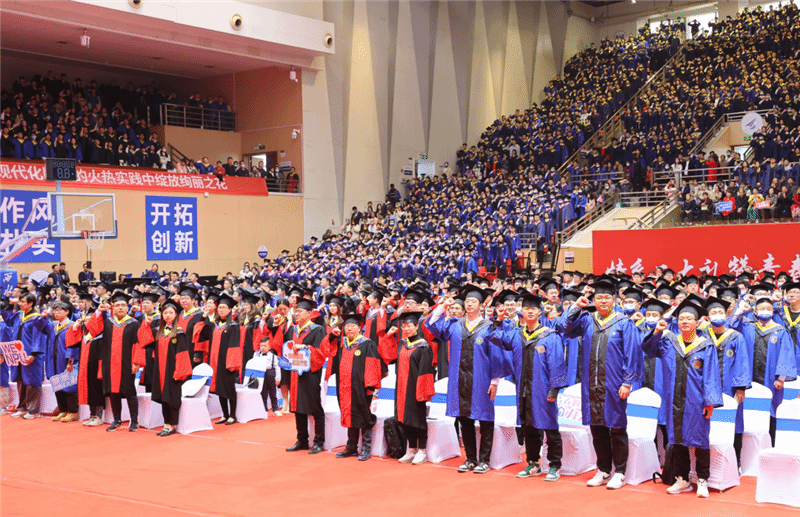 随后,全体毕业生起立佩戴校友徽章。校领导、院士、杰出校友为校友联络员代表佩戴校友徽章并颁发聘书。机电学院硕士毕业研究生陈轲同学领誓,带领全体毕业生郑重宣誓:秉承“公诚勇毅”校训,弘扬“三实一新”校风,以实现中华民族伟大复兴为己任,不忘初心,笃定前行目标,牢记使命,勇做时代新人!铮铮誓言回荡在翱翔体育馆上空,也激荡在学子们心中。