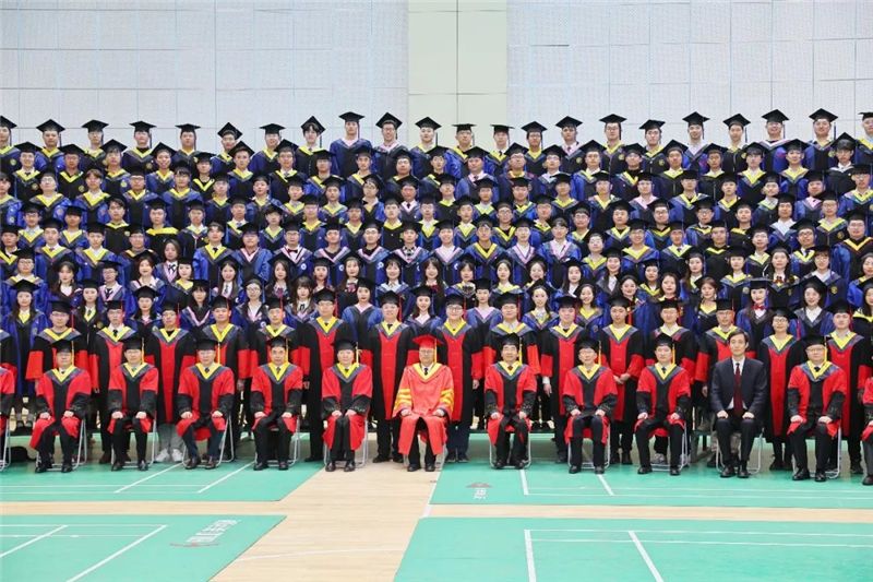 校领导、院士、杰出校友们为毕业生代表拨穗正冠、颁发毕业证书并合影留念。