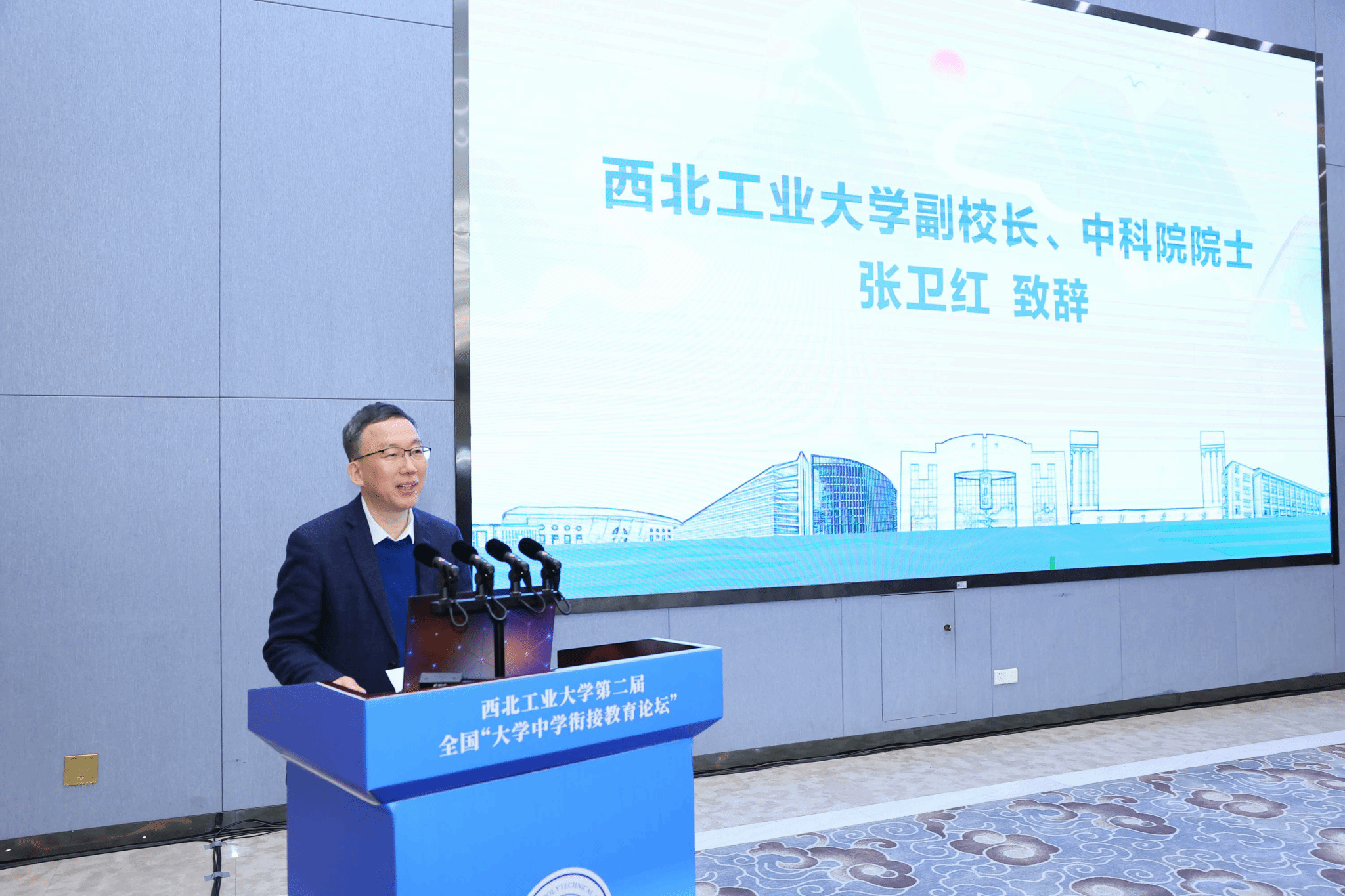 会上,张卫红代表学校对参加本次论坛的嘉宾们表示热烈欢迎和衷心感谢,并介绍了西工大的特色和基本情况。他表示,希望各位中学领导和老师们通过走进西工大,更加全面深入地认识、了解西工大,共同开创合作、沟通、互利、共赢的人才培养新篇章。