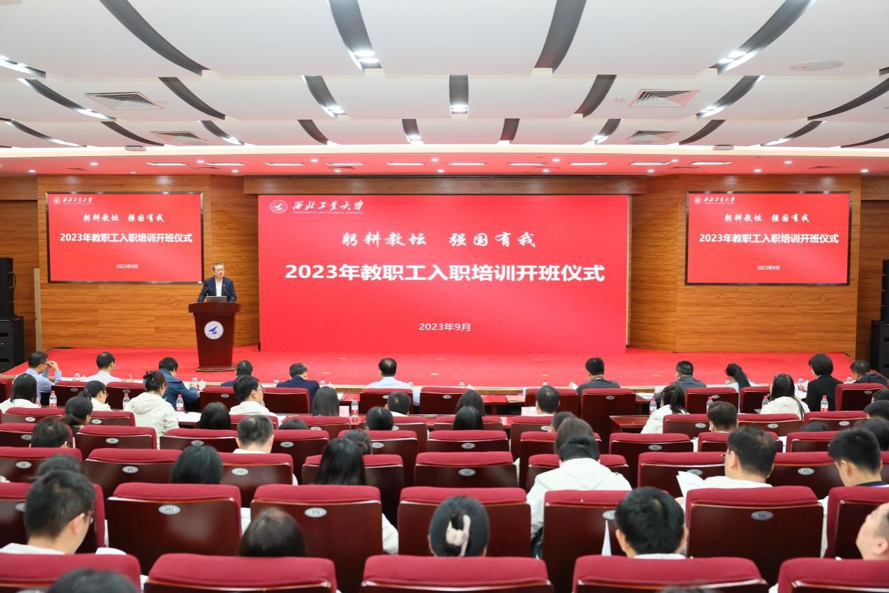 校长宋保维为全体新入职教职工作题为《躬耕教坛 强国有我 努力成为培根铸魂立德树人的“四有”好老师》的入职培训。宋保维从学校概况、建设成效、创新发展三个方面带领新入职教职工纵览西工大发展历程,校史校情校貌,介绍了校园环境条件、人才培养质量、高水平师资建设、科技创新实力、社会服务贡献、国际合作新局面等方面的建设成效,并强调了学校的发展思路和重要举措。宋保维对新入职教职工提出了四点希望:一是有理想信念,做“心有大我、至诚报国”的好老师。希望大家要以理想信念为基,用远大志向、纯粹的心灵、高尚的节操引领学生前行。二是有道德情操,做“言为士则、行为世范”的好老师。希望大家用模范的言行举止为学生树立榜样,用高尚的人格魅力引领学生的心灵,努力成为塑造学生品格、品行、品位的“大先生”。三是有扎实学识,做“学识渊博、追求卓越”的好老师。希望大家学识渊博,视野开阔,充满智慧,与时俱进,追求卓越,不断汲取新知识,更新自己的知识结构,积极回应新的挑战。四是有仁爱之心,做“乐教爱生、甘于奉献”的好老师。希望大家在严爱相济的前提下晓之以情、动之以理,让学生“亲其师”“信其道”。