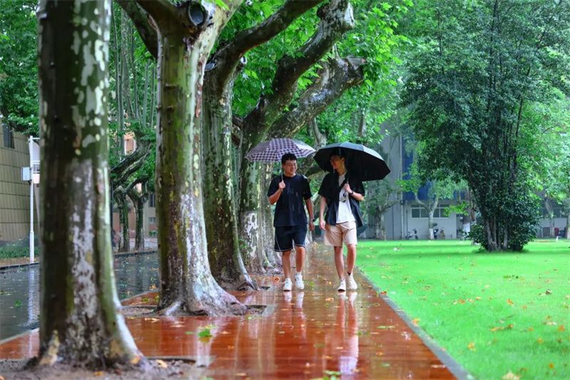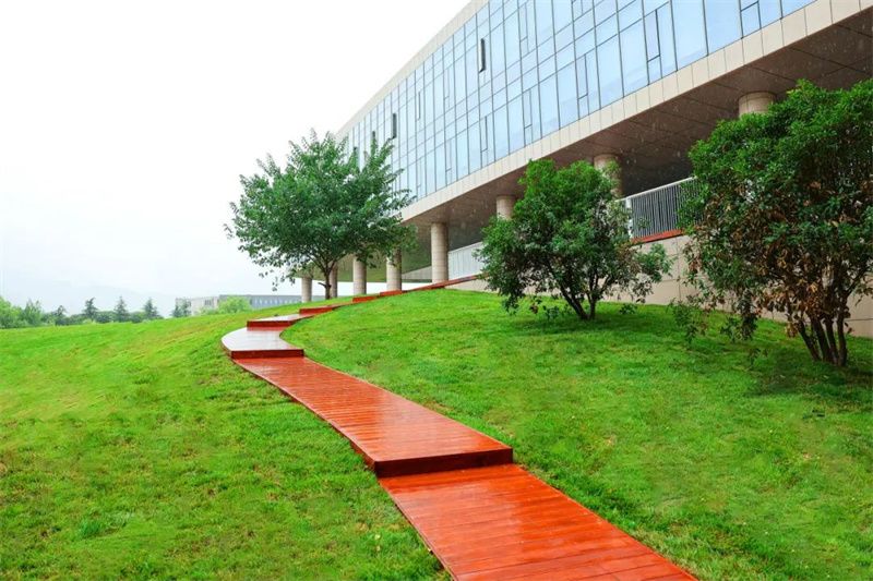现如今,茵茵绿草上铺设着木制栈道,新添的座椅提供了更为舒适的休闲空间,学习科研之余,漫步其间,在满眼苍翠中找寻灵感,在鸟语花香中畅聊未来。