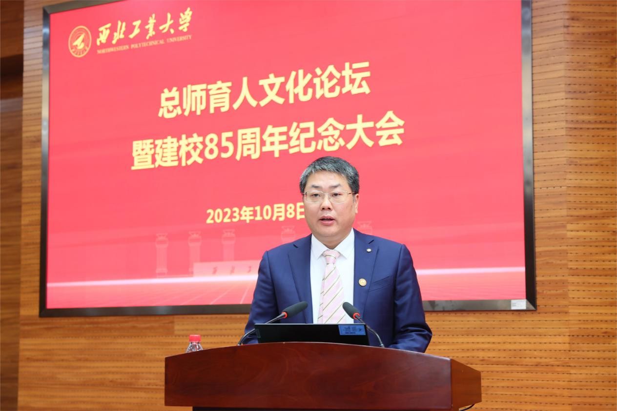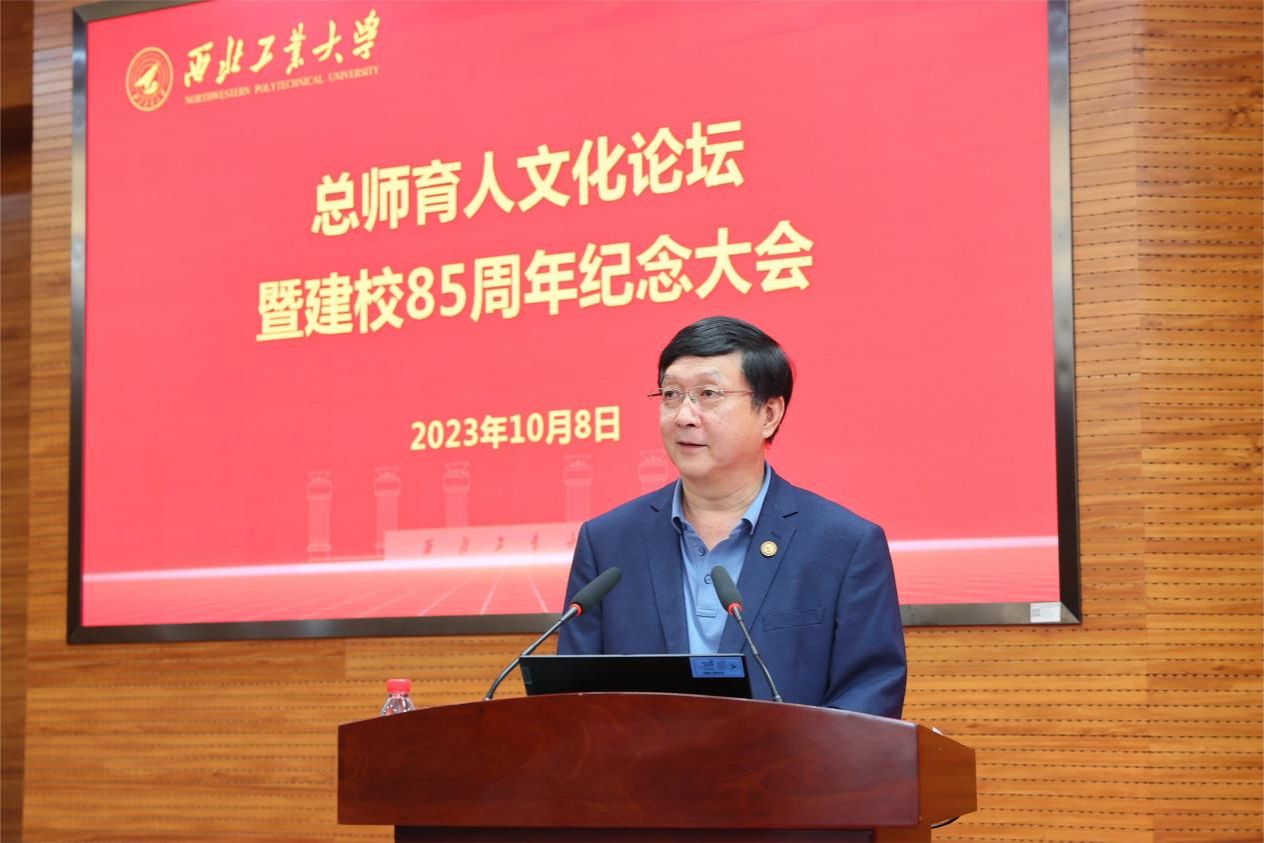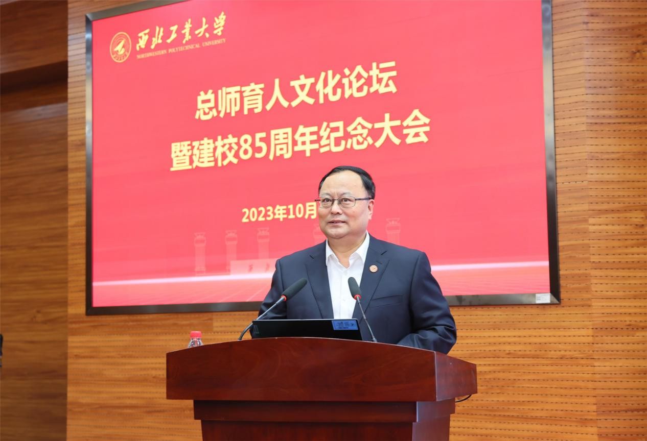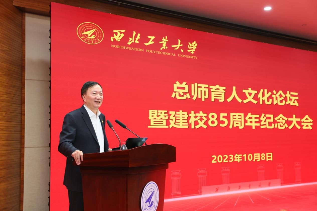 杨伟在主题演讲中表示,西工大是开启自己航空梦的地方,更是锤炼自身品格的地方。85年春华秋实,85载风雨兼程,值此母校85岁华诞之际,他谈了三点体会:一是“为党育人、为国育才”是“西工大现象”的根基。85年来,西工大与国家和民族的命运同呼吸、共患难、共发展,始终以“低调务实不张扬,埋头苦干敢担当”的实际行动育人育才、创新发展,为国家国防事业作出了重要贡献。二是“既注重理论,又注重应用”是“西工大现象”的根源。学校“工科为本、三航当家、信息赋能、融合强校”的科研发展思路,将更加培养和激励一代又一代工大学子理用结合、务实创新。三是“既传授知识、更培养方法”是“西工大现象”的根本。学校在传授知识的同时,更培养了学习新知识、应用新知识的习惯,培养出一批视野宽、基础厚、专业精、思维新、创新强的高层次人才。他建议,学校要继续有组织地推进与“三航”领域院所开展深度合作,要大力推进国家卓越工程师学院的人才试点合作。