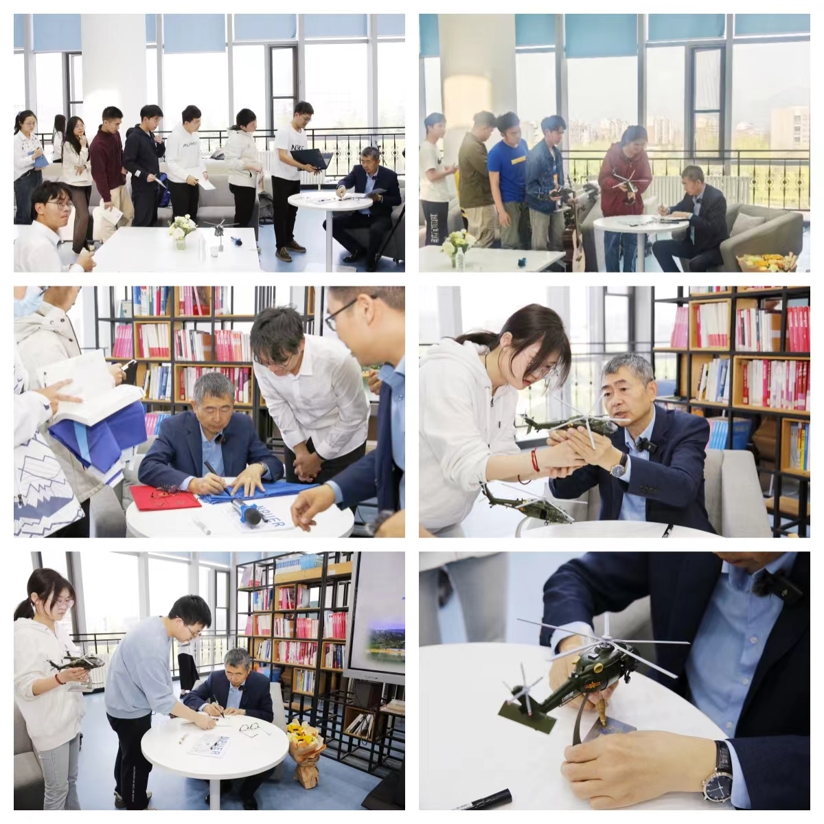 同学们围绕在邓景辉总师周围,眼里闪烁着兴奋与激动。“在无人机盛行的当代,直升机的发展前途是怎样的?”“对于科研工作者来说,如何找准自己研究方向呢?”“未来,AI技术如何应用于直升机行业?”……同学们的问题侧重点广泛,有的关心行业发展,有的关注技术挑战,还有的希望了解人生体悟。邓景辉就“直升机行业未来发展、无人机产业前景、新能源动力应用”等问题一一作出解答。同时,他鼓励青年学子树立远大目标,充分发挥个人价值,积极投身于祖国航空事业建设。