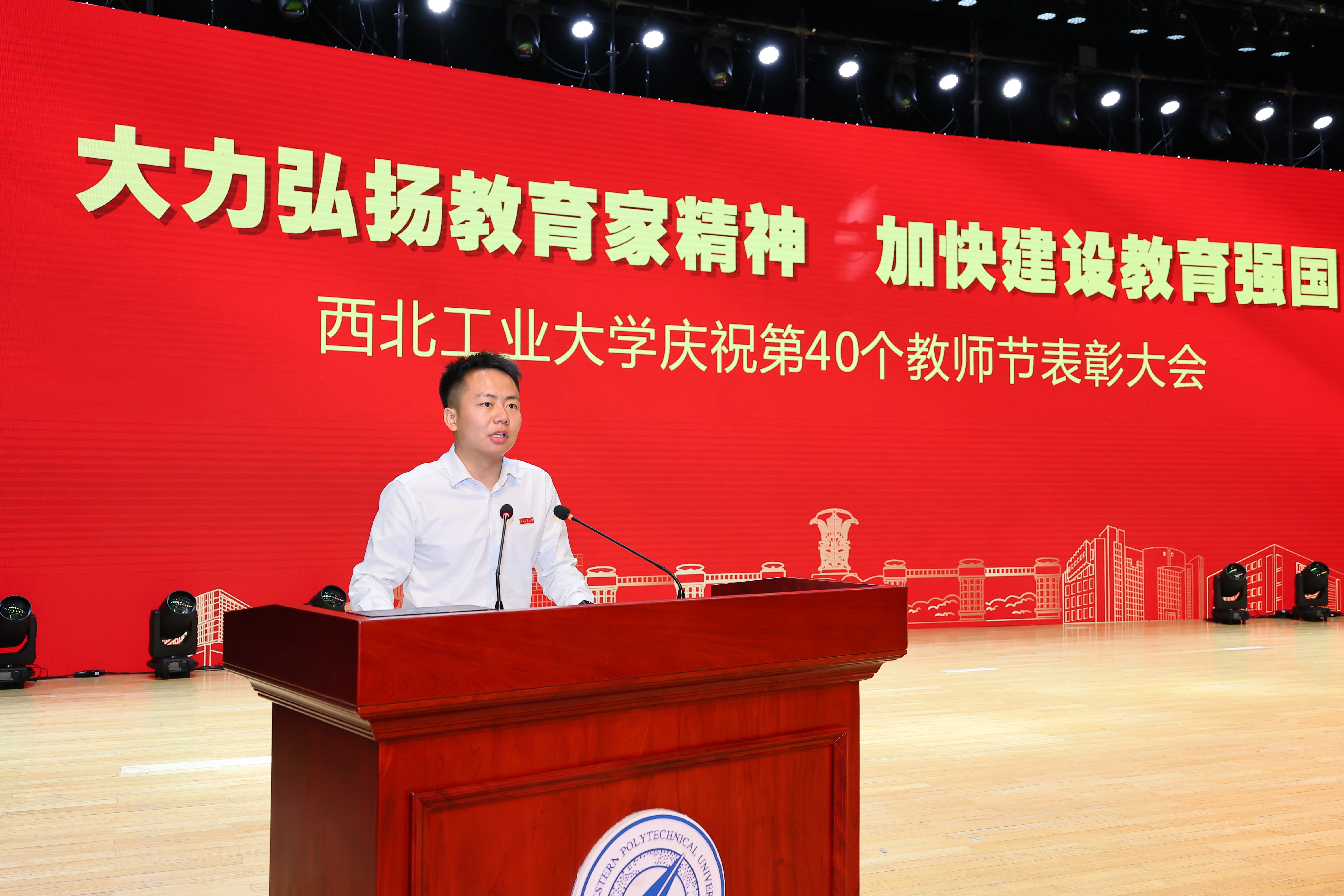 “师德杯”传承,是学校每年教师节颁奖典礼上最隆重的环节,它代表着一代代西工大人高尚师德风范的传承,激励着更多西工大教师积极投身教育强国建设。