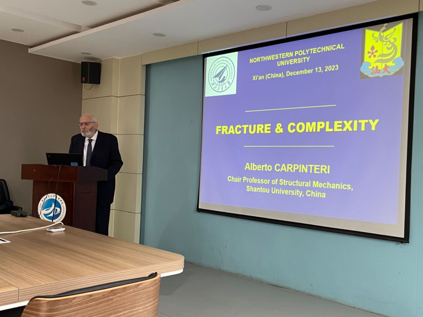 12月11-15日,欧洲科学院院士、欧洲科学与艺术院院士、欧洲人文和自然科学院院士、国际工程院院士、都灵科学院院士、欧洲科学院工程部主任(2016-2023)阿尔贝托·卡尔潘蒂尼(Alberto Carpinteri)教授,莫斯科航空学院航空技术学院院长德米特·斯德列茨(Dmitry Strelets)教授一行6人应邀参加会议并访问航空学院。2023丝绸之路航空航天国际产学研用合作会议于12月14日在西安顺利召开,阿尔贝托·卡尔潘蒂尼院士应邀在会议开幕式上作题为“变形、断裂和疲劳中的分形”的主旨报告。