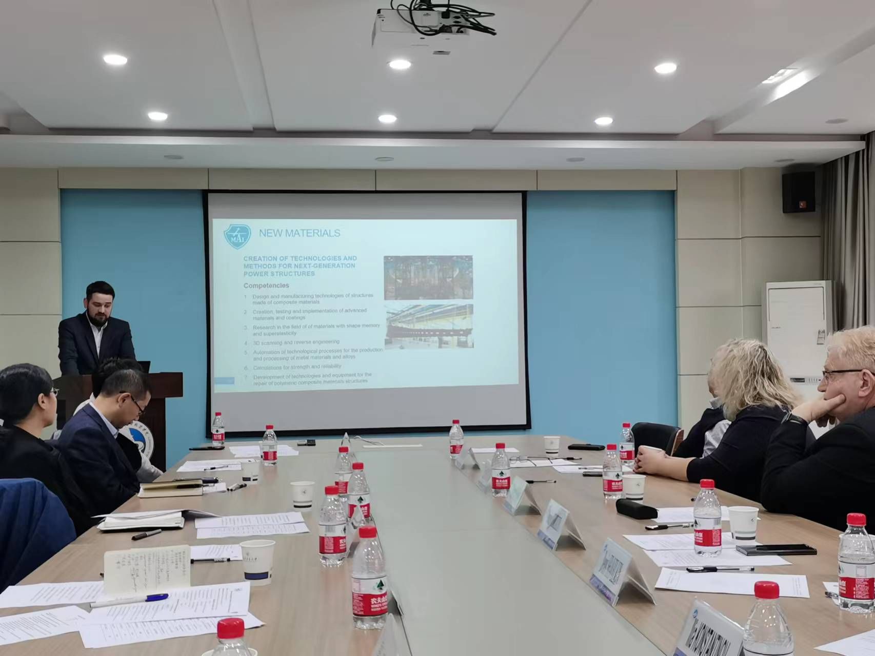 双方在航空楼A706进行了合作洽谈。航空学院党委书记于辉、副院长李斌教授、院长助理周生喜教授、马玉娥教授、郭亚洲教授、李霓教授、周杰教授、汪万栋教授、沙明工助理教授(民航学院)、外事秘书郑水平参加了会议。俄方参会人员有莫航航空技术学院院长德米特里・斯特烈列茨教授、动力学与飞行控制系主任亚历山大・叶夫列莫夫教授、副院长丹尼斯・沙维金先生、院长助理伊莉娜・波拉维娜女士、国际教育项目经理伊利亚・康斯坦丁诺夫先生、谢尔盖・谢列布里昂斯基副教授。