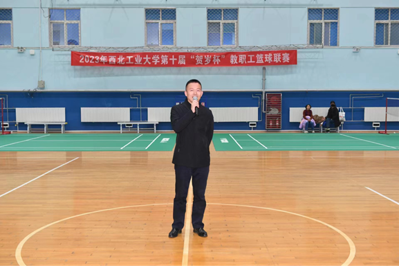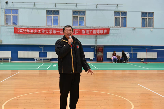 王立彬教授热情致词,祝愿老师们能够在篮球运动中收获健康和快乐,希望西工大教职工群众体育运动比赛越办越好。