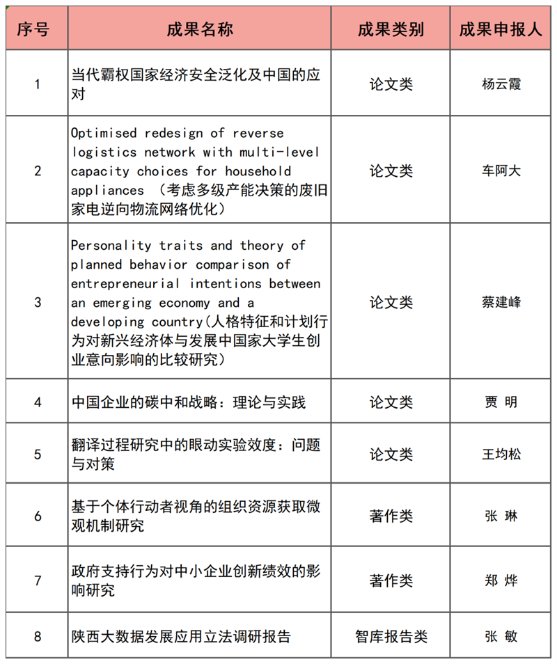 陕西省第十六次哲学社会科学优秀成果奖必赢官网获奖名单