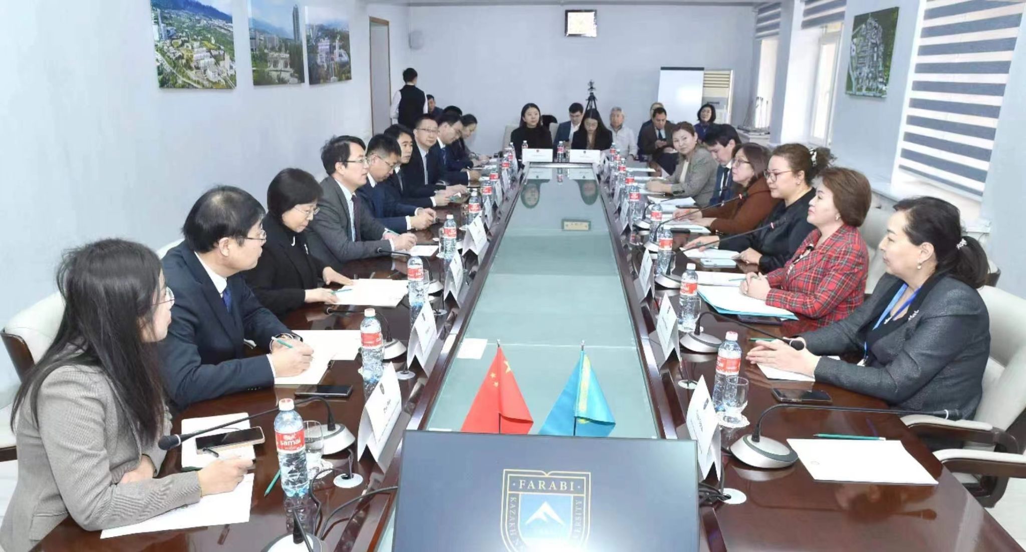 1月30日上午,代表团与“阿里·法拉比”哈萨克国立大学(以下简称哈国大)进行交流座谈,双方就分校法人注册、新学期招生计划、秋季学期教学安排及后续开展博士生联合培养等事宜进行了会谈,提出要建立任务清单,落实责任,全力加速推进分校后续建设工作。