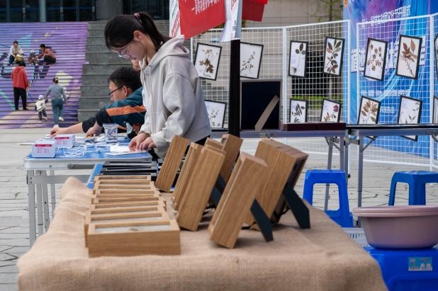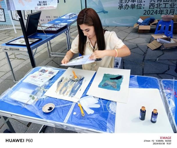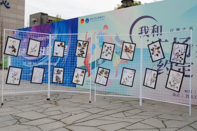 在‘绿’染三秦·秦岭生态保护”活动中,同学们用多种多样的昆虫标本展示着对秦岭生态的无限热爱和无尽探索。活动现场还准备了塑封机、素描纸、蓝晒液等材料,鼓励大家积极寻找校园内丰富的植物品类,用塑封和古法“蓝晒”为它们留下春天的“倩影”。同学们在制作作品的过程中深切感受着生命的活力、春天的美好、生态的神奇。