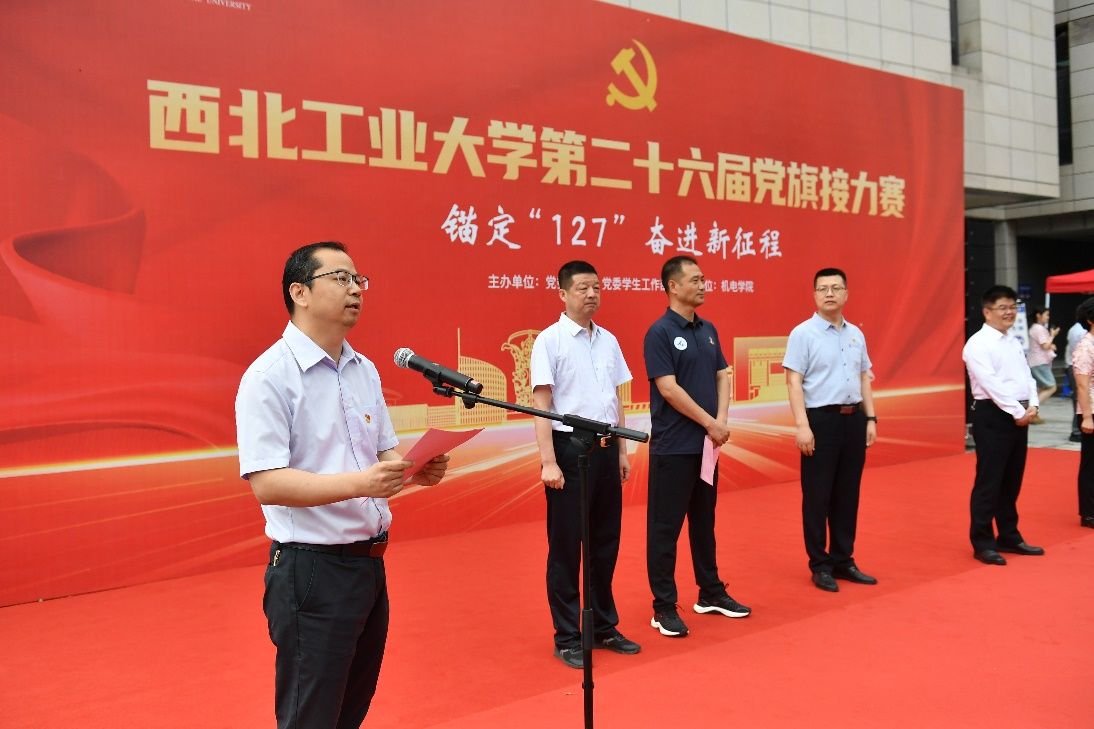 5月26日上午,由党委组织部、党委学生工作部联合主办,机电学院承办的“锚定‘127’,奋进新征程”第二十六届党旗接力赛在长安校区数字化大楼门前广场举行。